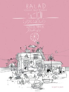 Balad, voyage sans bagage est issu de dessins réalisés par l’illustrateur égyptien Walid Taher lors de ses déambulations du Caire à Marseille, de Barcelone à Tétouan, d’Athènes à Clermont-Ferrand… À partir des images, il a écrit une aventure urbaine, loufoque et attentive aux petits riens qui font un quotidien.